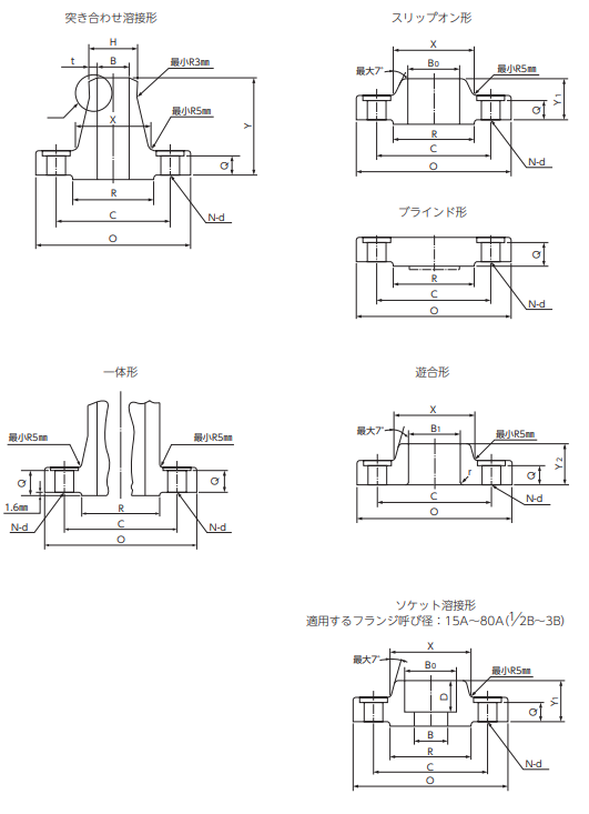 ※本表はJPI-75-15-2011「石油工業用フランジ」付表6に示された寸法と同じです。