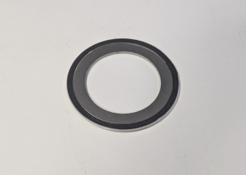 お客様の仕様に基づき、バルブ用の高温・高圧ガスケットとして「D1000 うず巻き型ガスケット(内輪付き)」(厚さ4.5mm、φ135 × φ119 × φ91)を3枚製作しました。SUS304製の内輪(インナーリング)を使用し、V字形断面の金属製フープとフィラー(シール材)を専用の巻線機で高精度に巻き上げています。今回は短納期でのご依頼に対応いたしました。