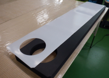ウォータージェット加工は、熱を発生させないため、貼り合わせ材の加工に最適です。