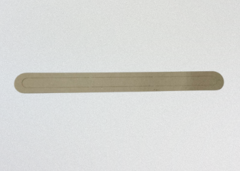 お客様の図面に基づき、耐熱性に優れた「TOMBO™ No. 6750-S(バーモサルシート-S)」(厚さ1.5mm)から、水面計用の断熱制振シートを製作しました。サイズは34mm × 340mm(9Bサイズ相当)で、今回は20枚の小ロット製作です。当社のプロッター加工機を使用し、抜き型を作ることなく、CADデータから直接、正確な寸法で切断しました。