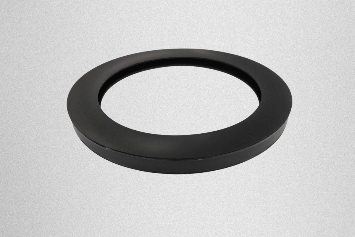 今回の事例は、特殊な断面形状が求められるマンホール用「コ字型パッキン」です。t18という厚みと複雑な段差構造を金型で製作すると多額の費用がかかりますが、今回は3tのゴムシートを精密に積層(貼り合わせ)することでコ字型を形成しました。ウォータージェットで展開部材をカットし、熟練の職人がエンドレス接着を施すことで、一体成型品と遜色ないシール性能を維持しつつ、大幅なコストダウンを実現しています。