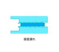 - 接面漏れ: ガスケットとフランジの接触面(境目)を通る漏れ(液体・気体問わず発生)。