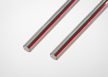- ・可視方向の裏面に赤線を施すと、液体部が屈折膨張により赤線が大きく見え、液位の区別が鮮明に見やすくなります。